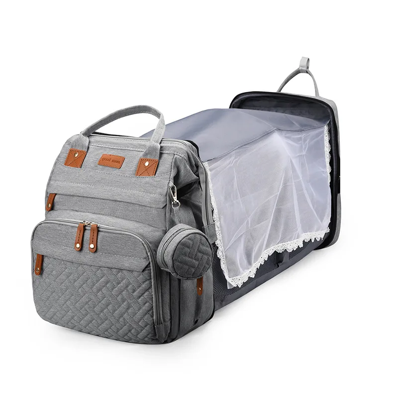 Lit Pliant Intégré : Transformez facilement le sac en un lit d’appoint confortable, offrant à votre bébé un espace propre et sécurisé pour dormir ou être changé lors de vos déplacements.